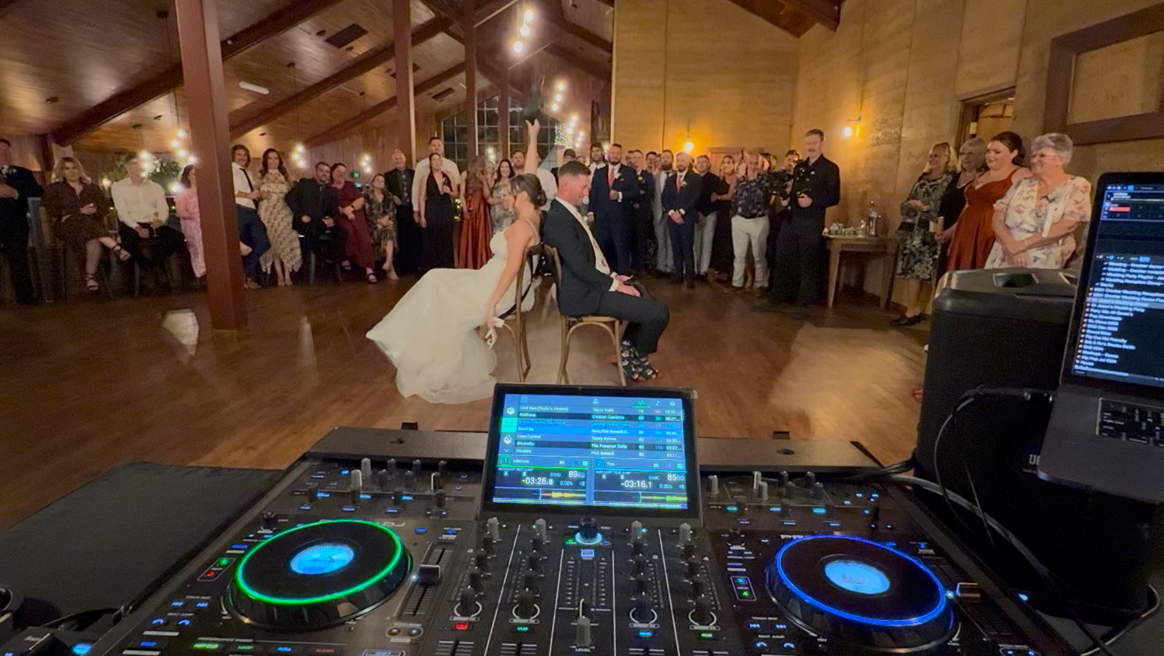 Then when it’s time to open the dance floor, the room shifts. Dynamic movement, colour changes, and energy-driven lighting kick in to elevate the party and create that true “wedding reception” moment.